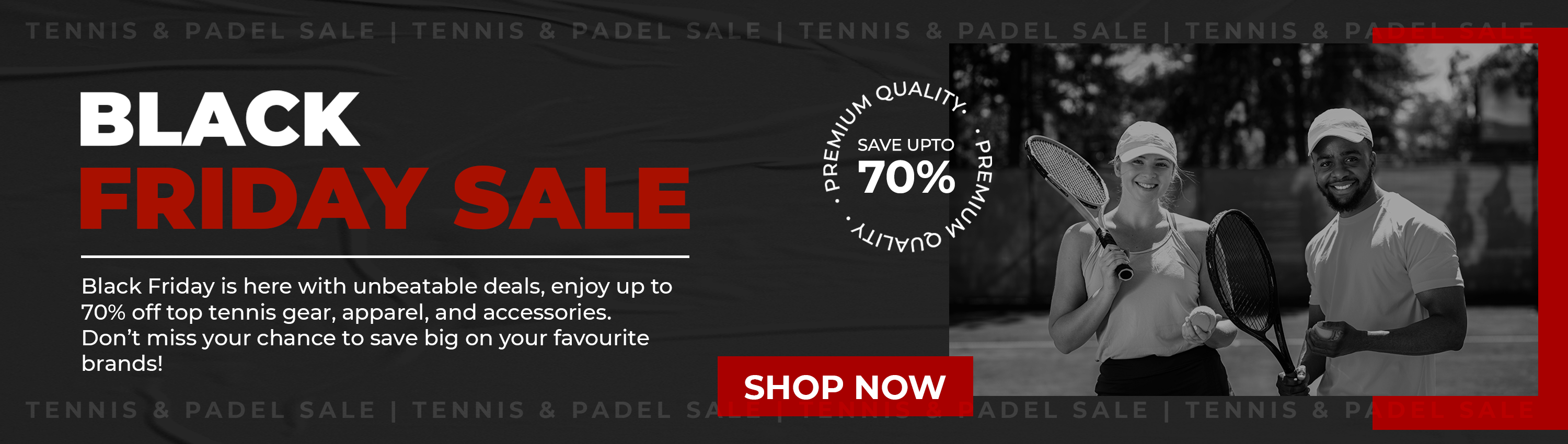 From 2017 onwards, our passion has been to offer you the newest rackets, strings, balls, shoes and clothing, all at the most affordable prices in the UK. Our experts carefully test each product to ensure quality before we recommend it. Our excellent relationships with top brands like Wilson, HEAD, Babolat, YONEX & ASICS mean we can secure the lowest prices and share those savings with you. Enjoy premium and tracked, carbon neurtral delivery, frequent sales, and an exclusive 10% discount on your first purchase when you subscribe to our newsletter!